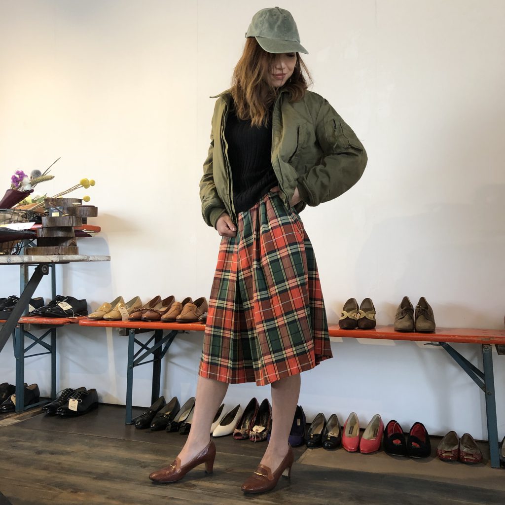 ボーイズライクなミリタリーに足元はあえてのパンプス。