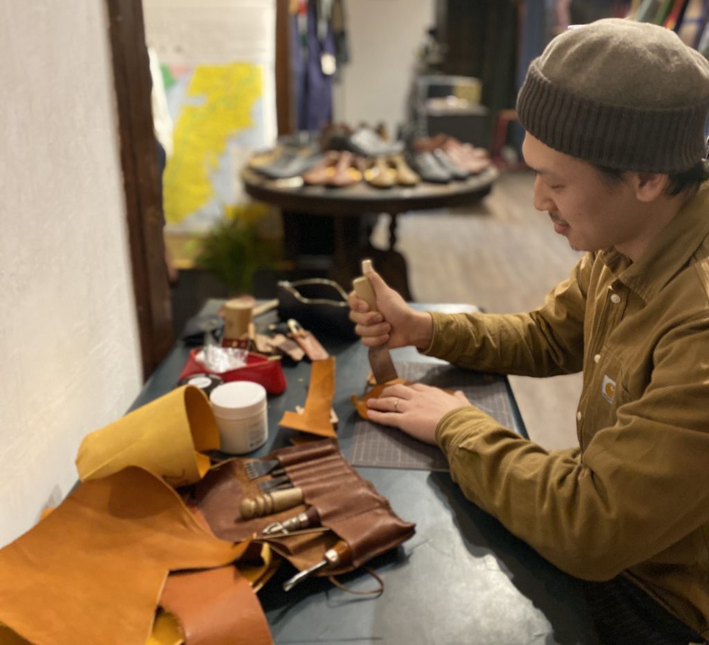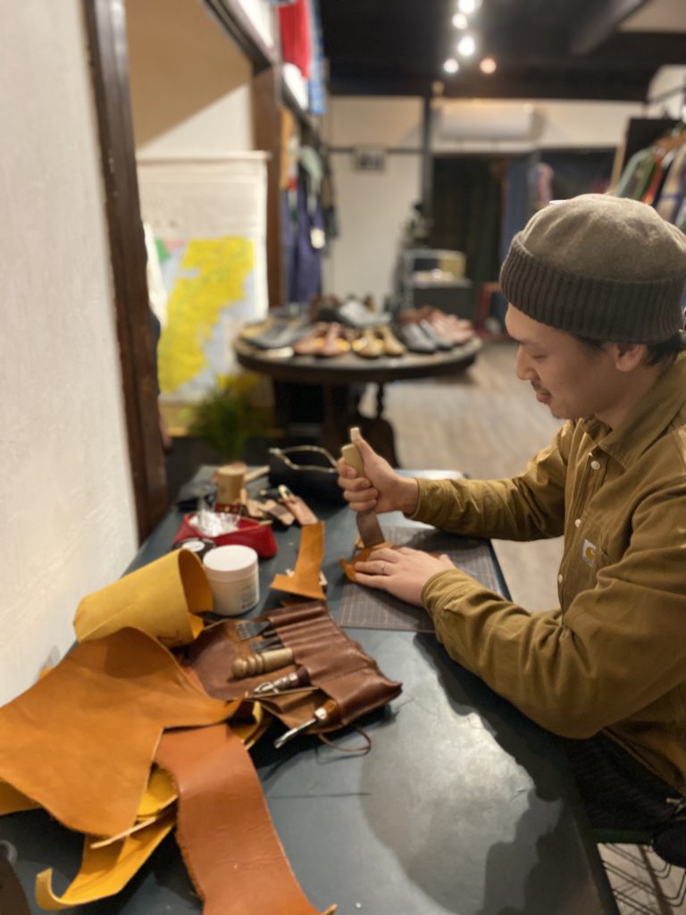 OWNで革財布や名刺入れを取り扱わせて頂いている”HatSak Craft”の荒井氏による講習です😄