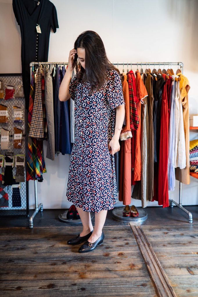 ワンピース、パンプス、ともに1点ずつ。店頭にて販売中。