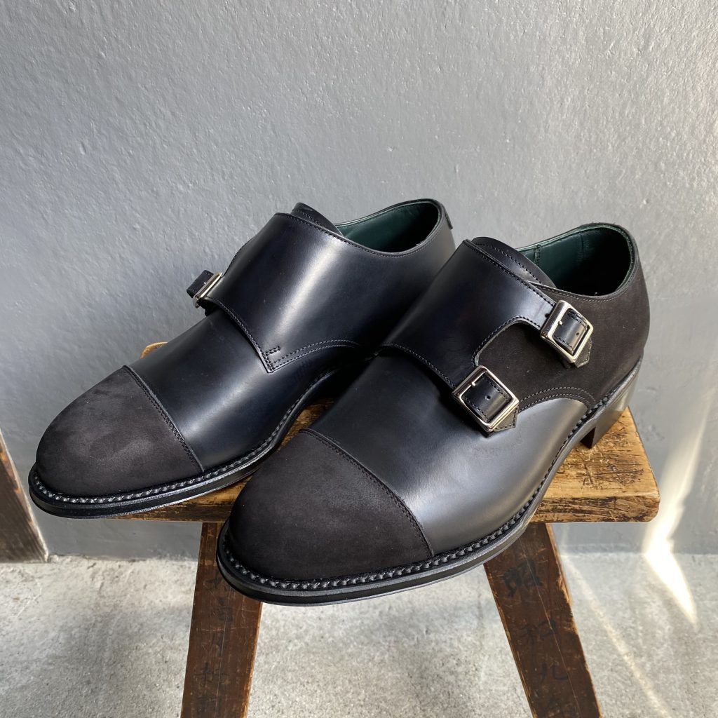 異素材の組み合わせが、モンクシューズのディテールとよくマッチしていますね。