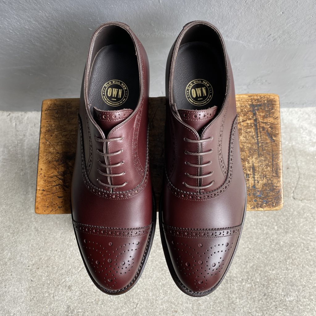 上品なセミブローグとWineのカラーリングがマッチして大人の色気と気品が漂う一足に仕上がりました。🍷
