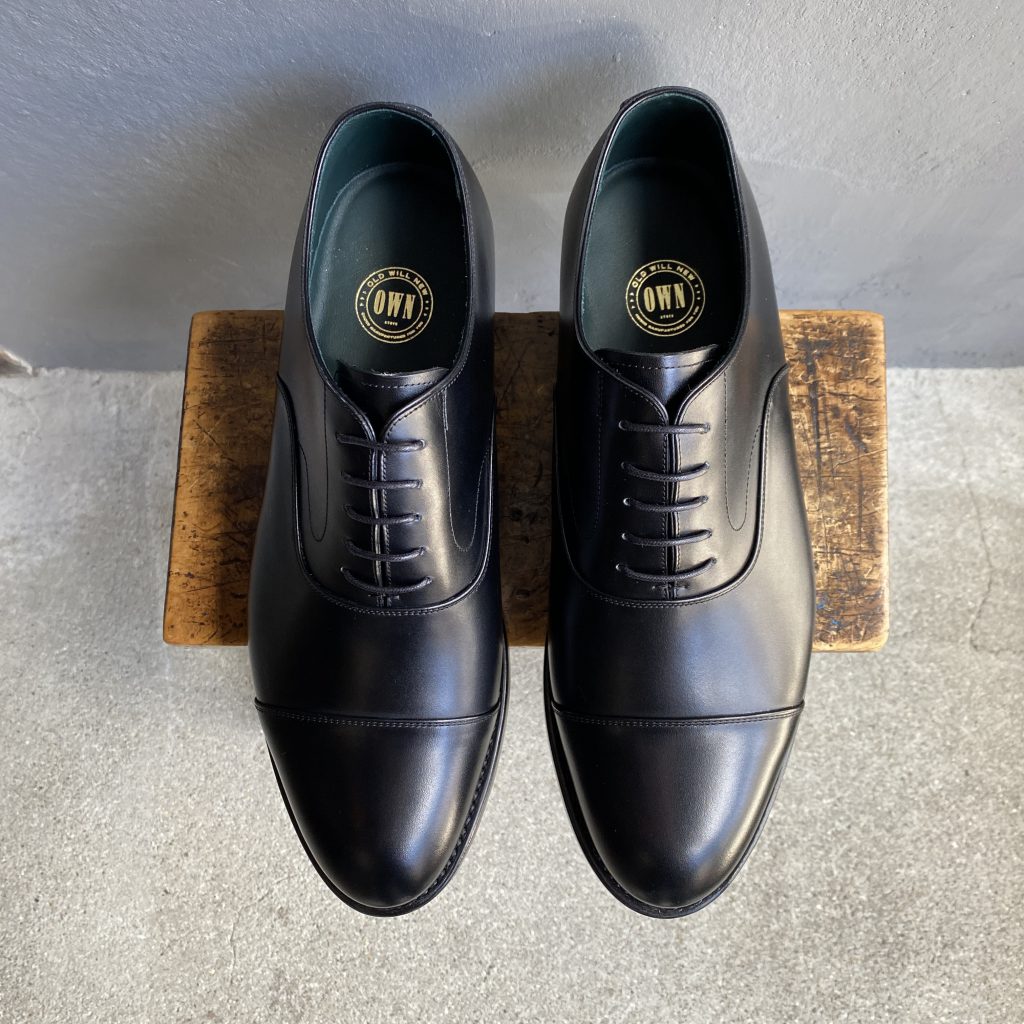 アノネイカーフで作る、黒の内羽根ストレートチップ。