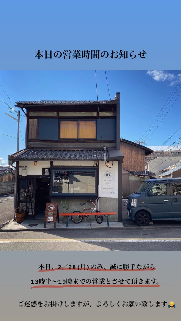 本日、2月28日【月】のみ、誠に勝手ながら