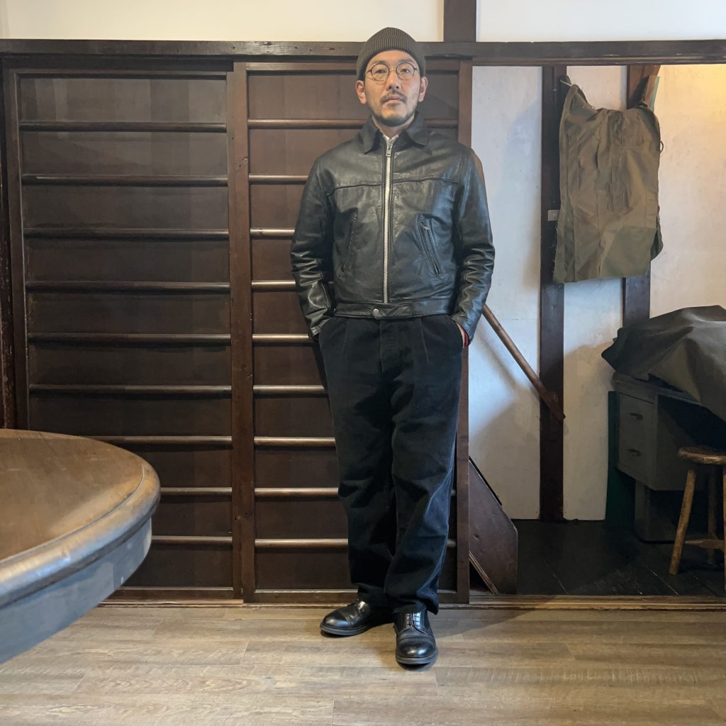 襟付きのライダースは、落ち着いた雰囲気を出せます。😄