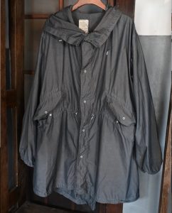 米軍スノーパーカを、当店でブラックに後染め&両サイドにポケットを取り付けてリメイクした1点物。😄