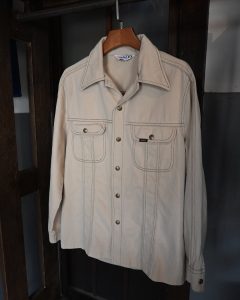シワになりにくいFABRIC IMPROVER加工が施された、コットン生地。70年代らしいディテールが詰まった一着😄