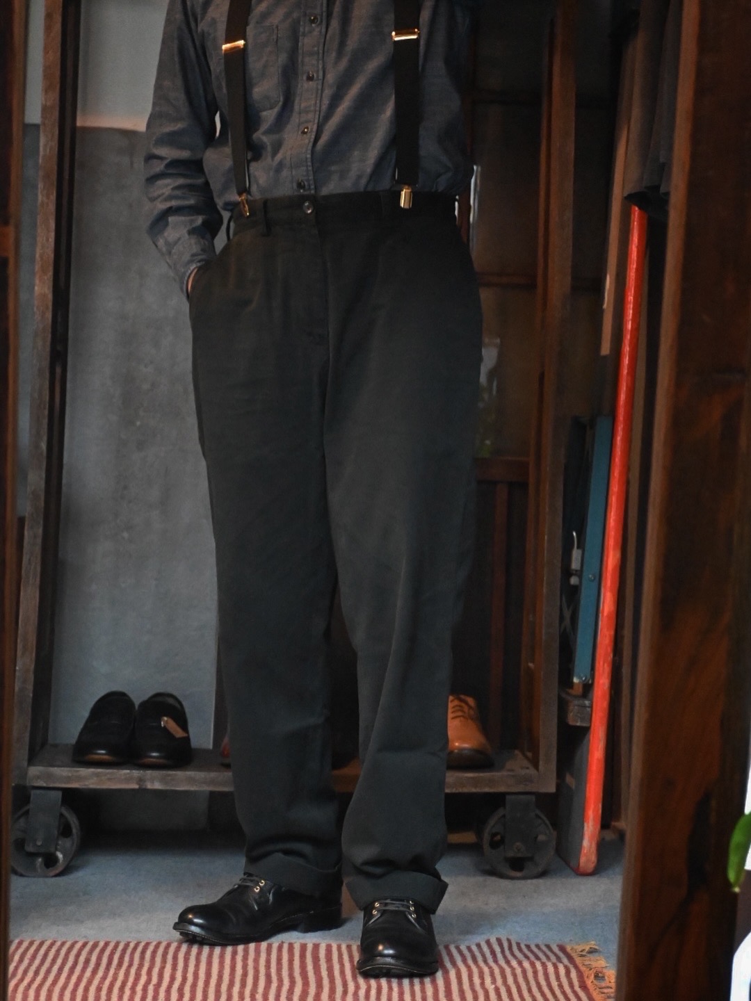 ブラックでまとめた “革靴×サスペンダー” のstyling😁