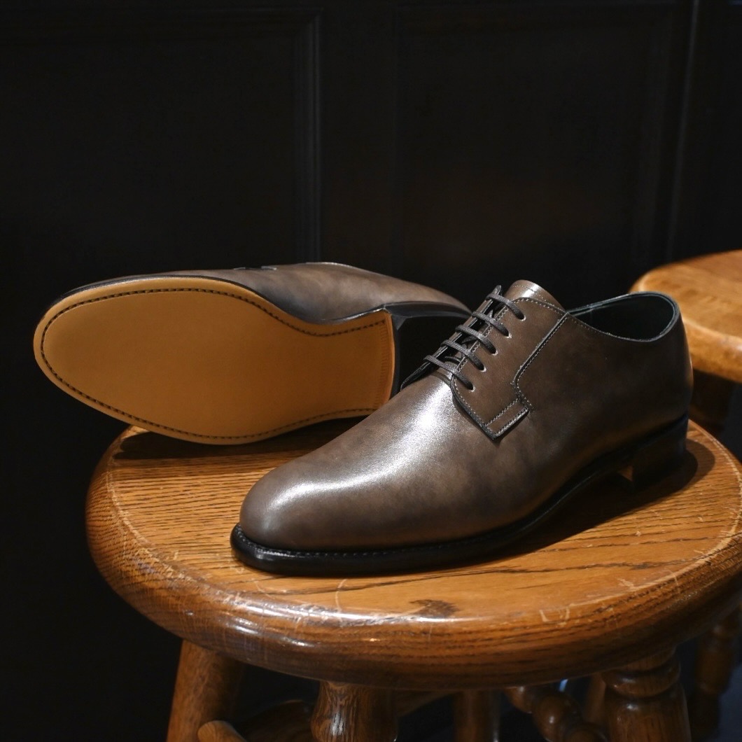 #サイズオーダー #デザインオーダー #レザーソール #グレーレザー #外羽根 #ダービーシューズ #ビジネスカジュアル #オンオフ兼用 #自分だけの #オーダーメイドシューズ