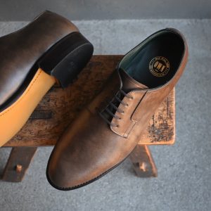 ムラによる深みのある色合いがまるで古びたアンティーク靴のような風合いを醸し出す、雰囲気ばつぐんの革素材です。