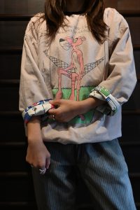 80〜90年代の空気をさりげなくまとった、ピンクパンサーのリバーシブルプルオーバー。