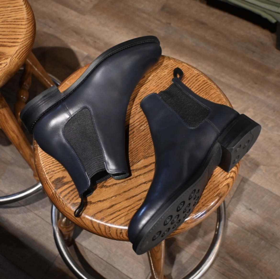 ネイビー革でつくる、チェルシーブーツ。