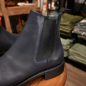 ここから履き込む中でどんどん濃い色に変化していきます。(ネイビー革のエイジングが見たい方は店頭でお声掛けくださいませ)