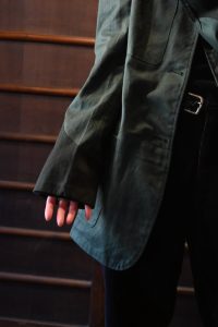 コットンのジャケットですが、柔らかい着心地で袖と襟の切り替えが他には、ないデザイン。