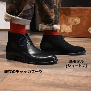 既存の綺麗めチャッカブーツと、少しラフな新モデル。