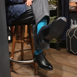 革靴を日常的に履くライフスタイルを提案するべく、店舗内には革靴に合わせてセレクトされた洋服や小物もずらりと並ぶ。
